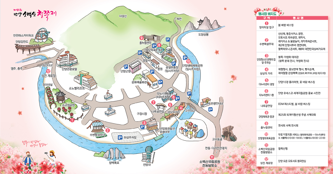 KTX나 시외버스 등을 이용해 단양을 찾는 경우에도, 단양역 또는 단양버스터미널에서 행사장까지 도보로 이동 가능한 거리에 있어 접근성이 매우 뛰어납니다.
