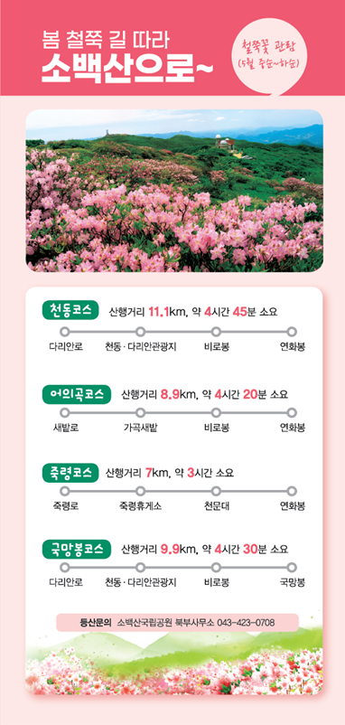 어느새 완연한 봄이 찾아왔습니다. 산과 들에 꽃이 피고, 따사로운 햇살 아래 나들이 가기 좋은 계절입니다. 특히 이맘때쯤이면 충청북도 단양에서는 해마다 아름다운 풍경과 즐거운 축제가 함께 어우러지는 특별한 행사가 열립니다. 바로 '단양 소백산 철쭉축제'입니다.