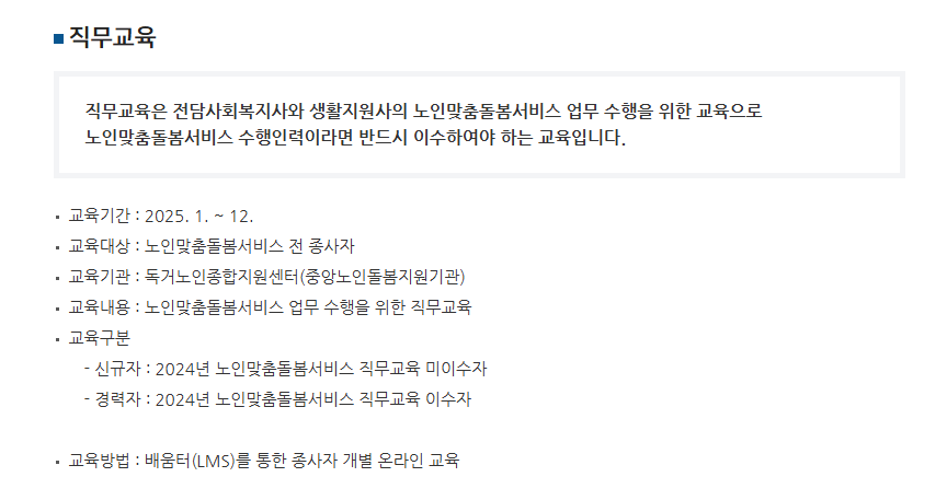 노인맞춤 돌봄 서비스 배움터 교육 신청 방법