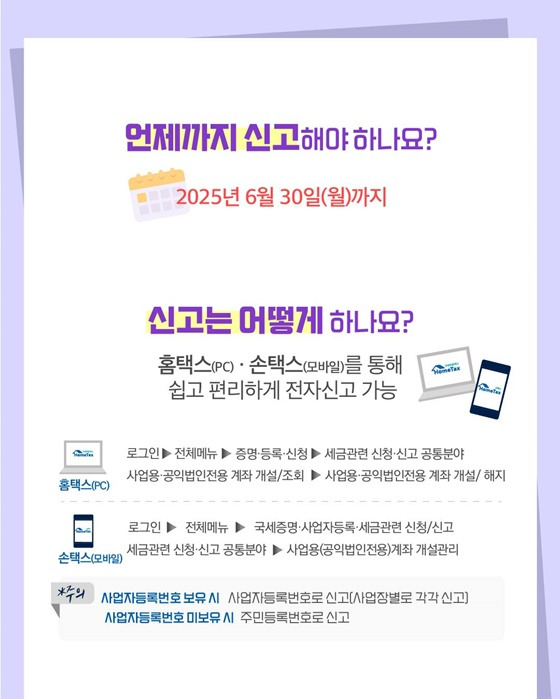 사업용계좌는 2025년 6월 30일(월)까지 반드시 신고해야 합니다. 신고 기한을 놓칠 경우, 가산세 부과는 물론이고 각종 세금 감면 혜택도 받지 못하게 됩니다.