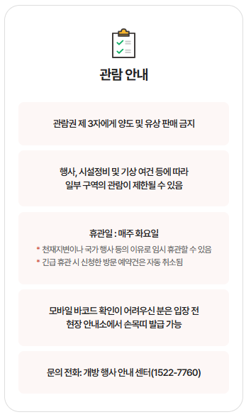 관람 시간: 오전 9시 ~ 오후 6시 (입장 마감 오후 4시 30분)
