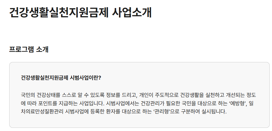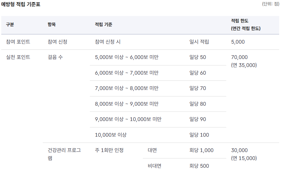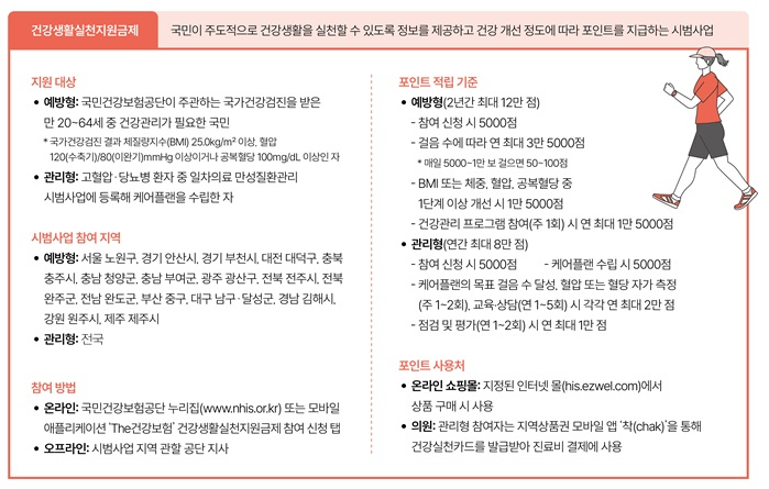 실질적인 포인트 혜택을 통해 참여자의 건강 행동을 유도하고, 장기적으로는 만성질환 예방과 건강 수명 연장이라는 사회적 효과까지 기대할 수 있는 제도입니다.