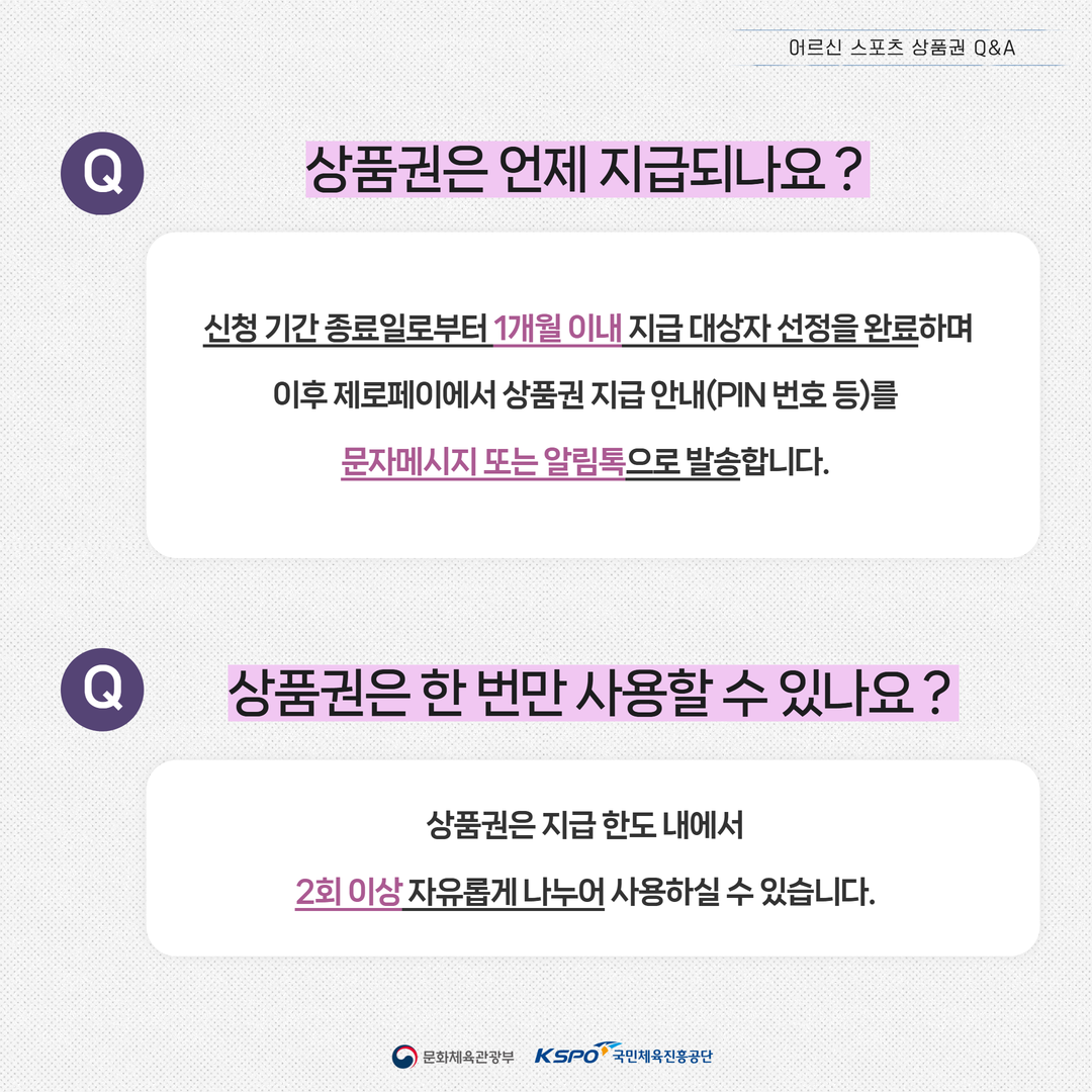 어르신 스포츠 상품권은 고령사회 진입에 따른 국가적 대응책으로, 기초연금을 받고 있는 만 65세 이상 어르신에게 최대 3매, 총 15만 원 상당의 체육활동 지원금을 제로페이 방식으로 제공하는 제도입니다.