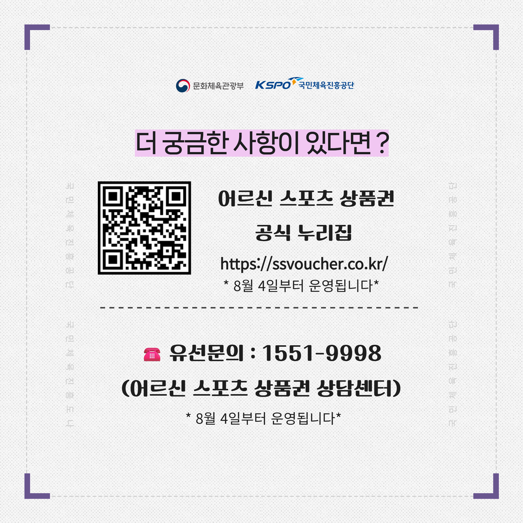 문체부는 이번 바우처 사업을 통해 어르신들의 체육활동 참여율을 높이고, 운동을 통한 사회적 관계 회복 및 고립 예방에 기여할 것으로 기대하고 있습니다.