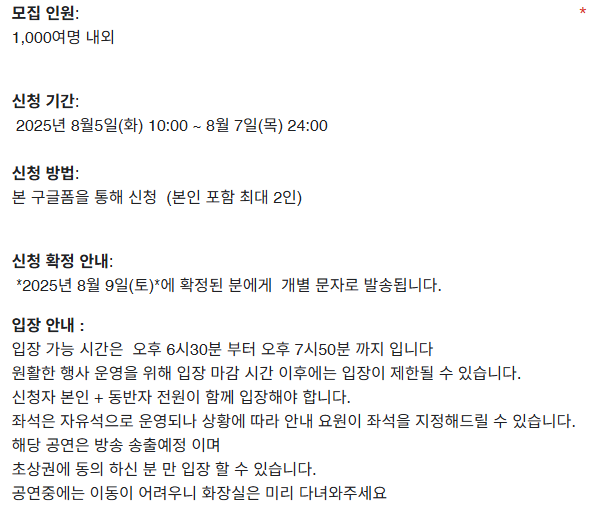 신청 기간: 2025년 8월 5일(화) 오전 10시부터 8월 7일(목) 자정까지