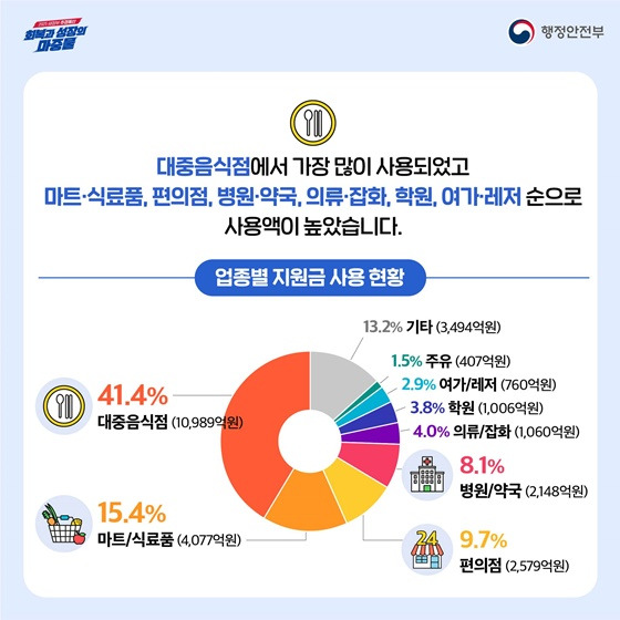 사용처 : 전통시장, 동네마트, 음식점, 학원, 생활 편의 업종 등 (대기업 유통점 일부 제외 예상)
