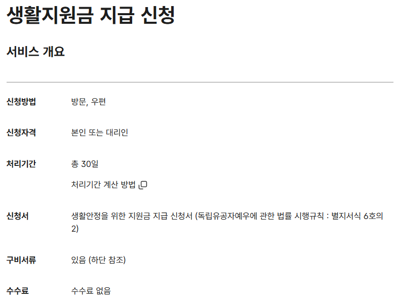 생활지원금 수수료 및 처리 절차