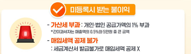 또한 사업 개시일과 등록일 간격이 너무 길어지면 불이익이 발생할 수 있으므로, 사업 개시 준비와 동시에 등록 절차를 병행하는 것이 바람직합니다.