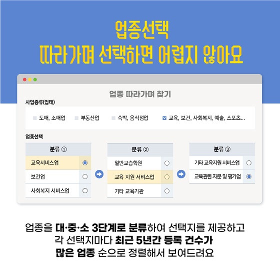 예를 들어 음식점을 창업한다면 위생교육 이수증과 영업신고증을 반드시 함께 제출해야 하며, 학원을 개설한다면 학원설립 운영등록증이 필요합니다.