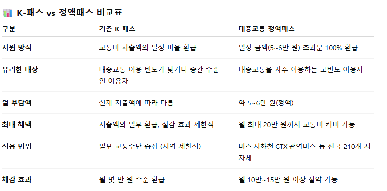 이번 제도는 기존 K-패스의 혜택을 확장하면서, 대중교통을 자주 이용하는 국민이라면 누구나 합리적인 비용으로 훨씬 큰 교통비 절약 효과를 누릴 수 있게 설계되었습니다.