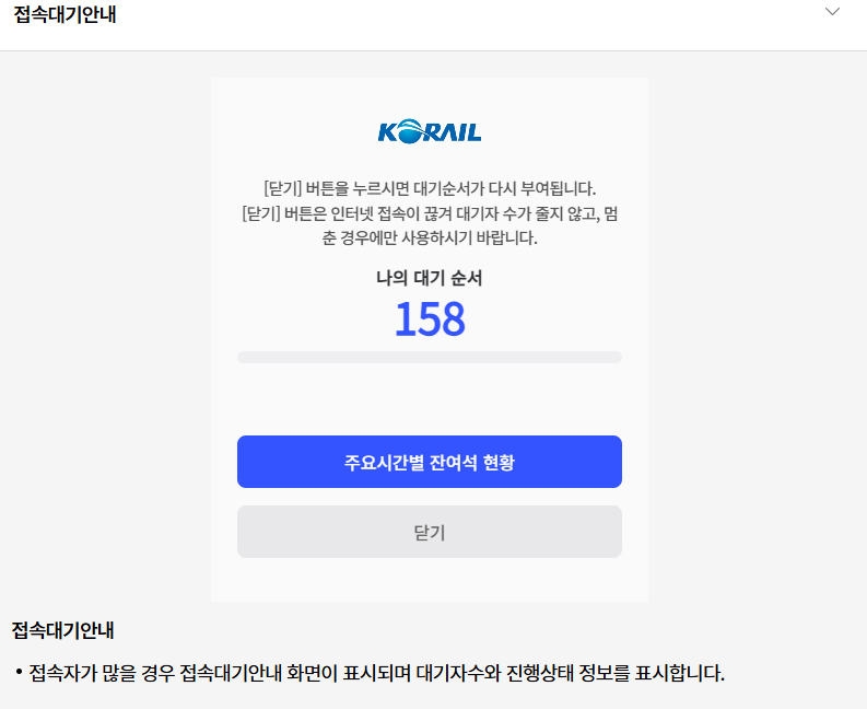 출발 시간 분산 : 인기 시간대인 오전·오후 시간은 경쟁이 치열하므로, 저녁이나 늦은 시간대를 선택하면 성공 확률이 높습니다.