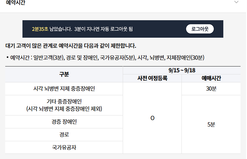 사전예매 대상자 조건 확인 : 65세 이상, 장애인, 국가유공자라면 일반 예매보다 앞서 신청할 수 있으므로 혜택을 활용하는 것이 유리합니다.