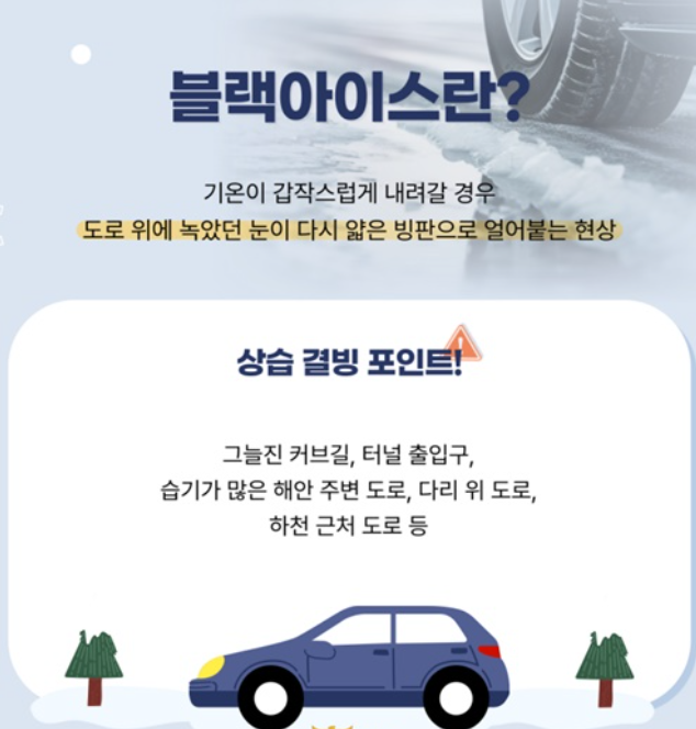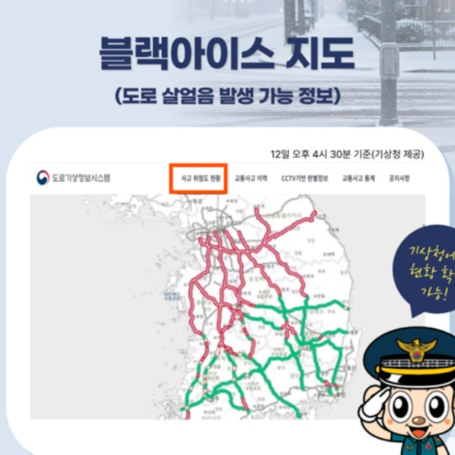 블랙아이스 사고를 예방하는 가장 현실적인 방법 중 하나는 사전에 위험 정보를 확인하는 습관을 갖는 것입니다.