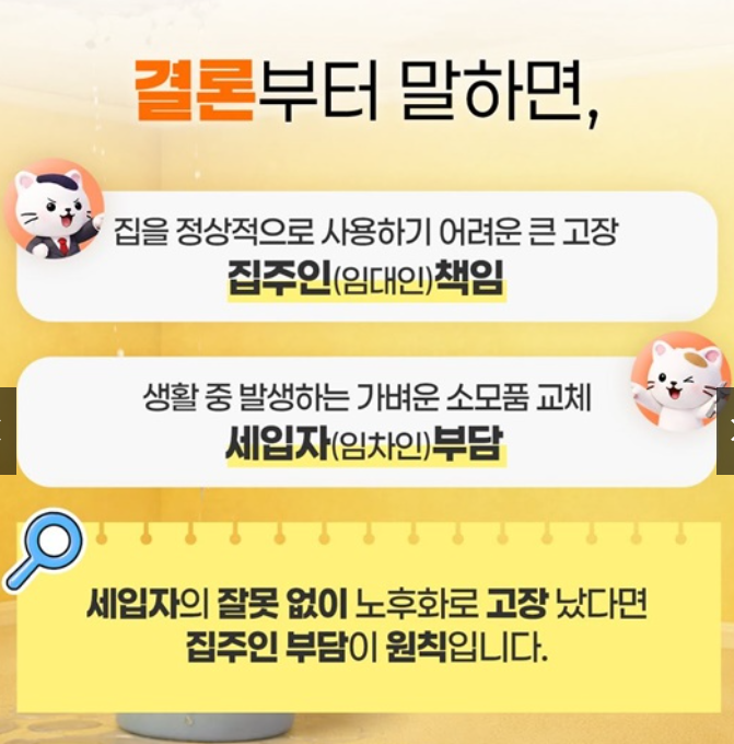 실제로 임대차 관계에서는 수리 책임을 둘러싼 분쟁이 자주 발생합니다. 일부는 집주인이 수리해야 할 부분인데도 세입자가 부담하는 경우가 있고, 반대로 세입자의 관리 소홀로 생긴 문제인데도 집주인에게 요구하는 상황도 발생합니다.