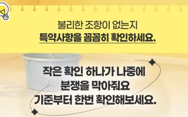 특약 내용이 지나치게 불리하다면 계약 체결 전에 수정하거나 협의하는 것이 좋습니다. 작은 확인 하나가 이후 큰 분쟁을 예방할 수 있습니다.