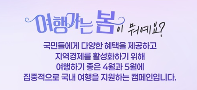 ‘여행가는 봄’은 국내 여행 활성화를 위해 4월과 5월에 집중적으로 운영되는 정책형 캠페인입니다.