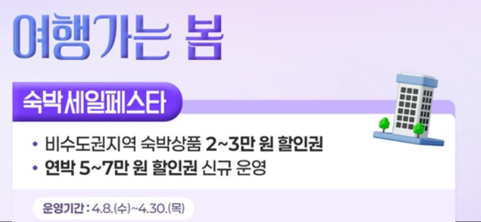 봄 여행 혜택 중 가장 많은 관심을 받는 것은 단연 숙박세일페스타입니다.