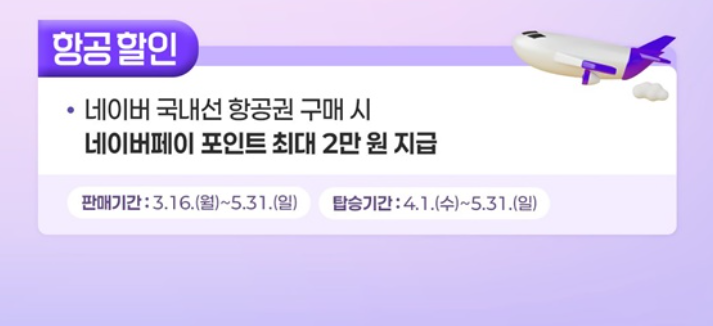 항공 할인 역시 철도와 동일하게 3월부터 판매가 시작되며, 4월과 5월 탑승 일정에 적용됩니다.