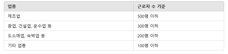 (우선지원 대상기업은 업종별 근로자 수 기준이 다름)
