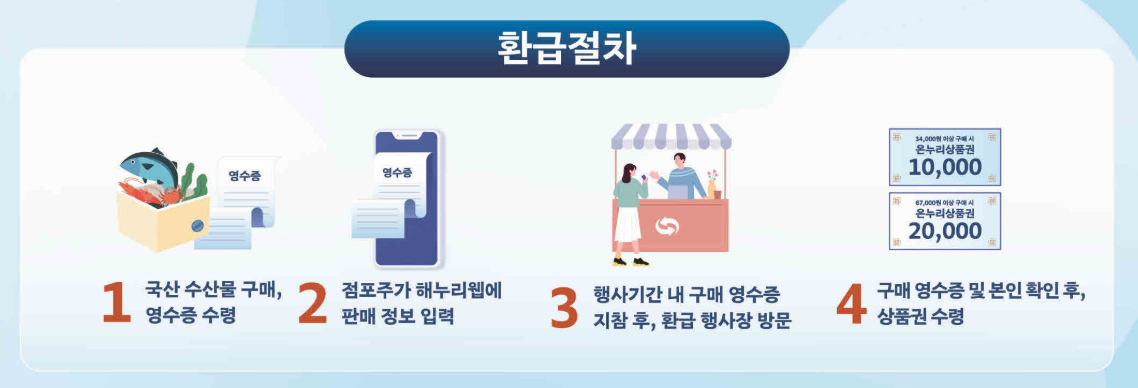 3월 26일부터 30일까지 5일간, 국내산 수산물을 구매하면 구매 금액의 30%를 온누리상품권으로 환급받을 수 있습니다.