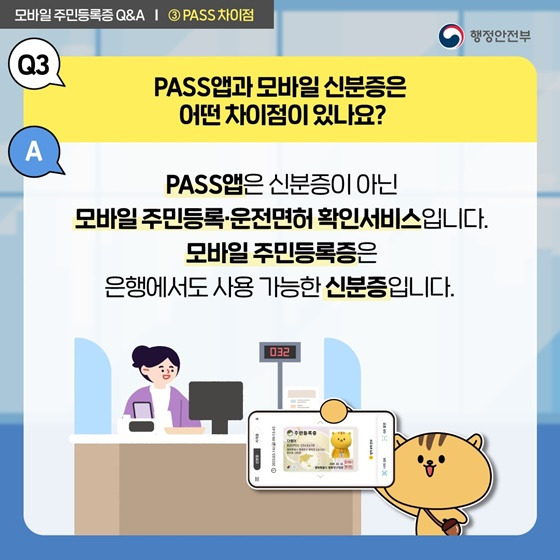Q3. PASS 앱과 모바일 주민등록증의 차이점은 무엇인가요?