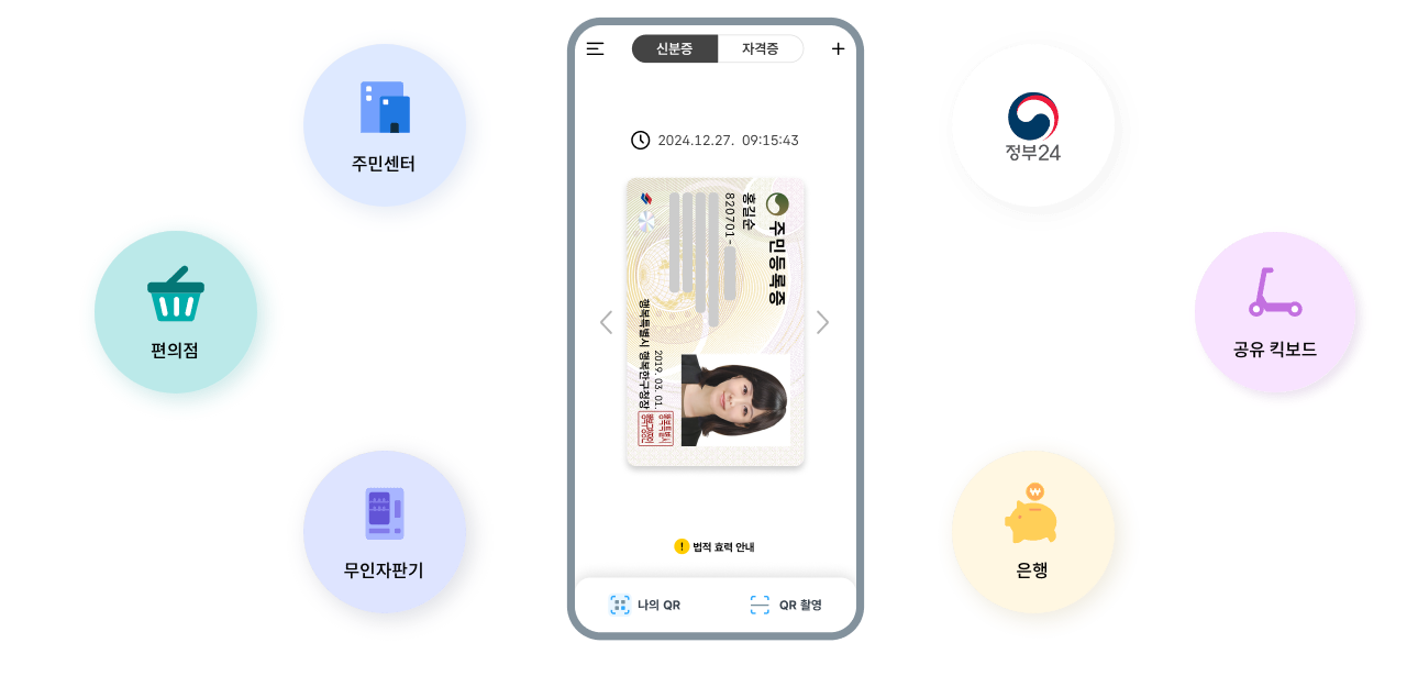 모바일 주민등록증은 기존 실물 신분증과 동일한 법적 효력을 가지며, 다양한 곳에서 활용할 수 있습니다.