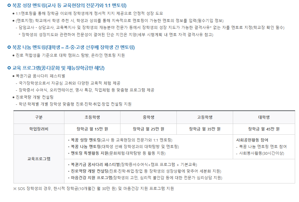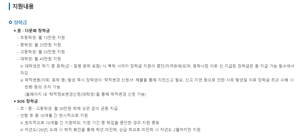 꿈사다리 장학금 지원 내용 및 혜택