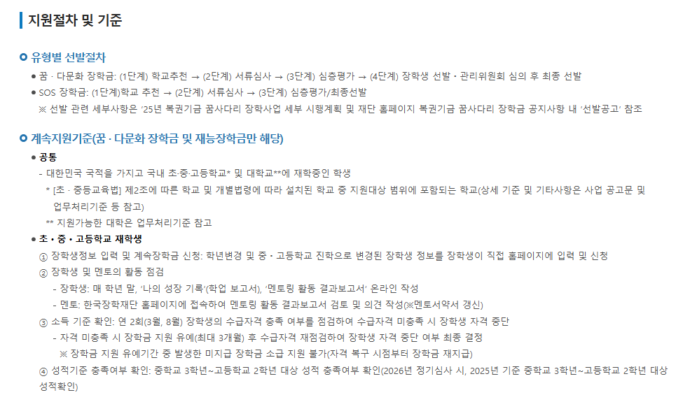 꿈사다리 장학금 신청 절차 및 선발 기준