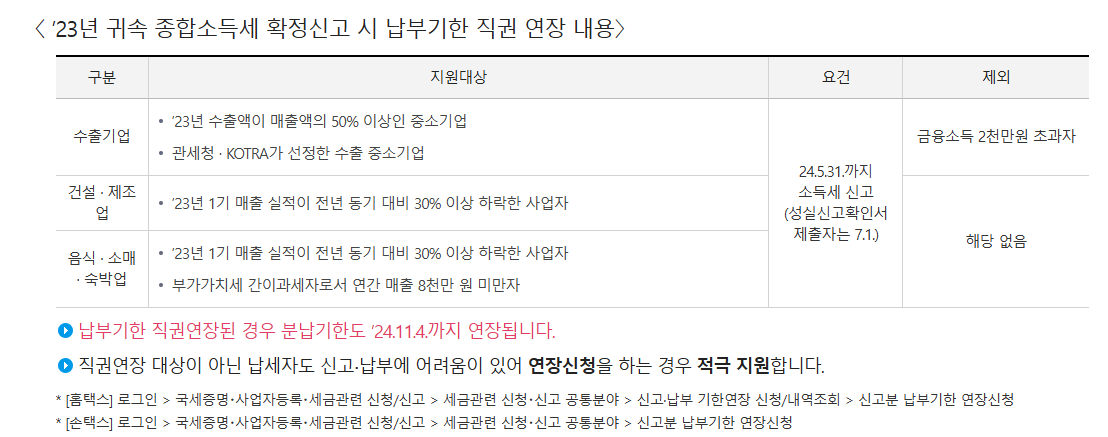 2025년에는 경제위기 지원의 일환으로 2023년 귀속 신고에서 적용된 납부기한 직권 연장 정책이 유사하게 적용될 가능성이 있습니다.