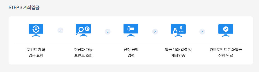 조회 및 입금: 포인트 조회 후 원하는 금액을 본인 계좌로 입금 신청합니다.