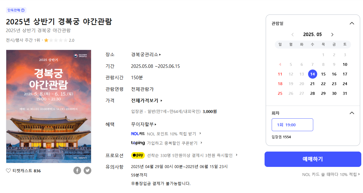 경복궁 야간관람 예매 방법 및 티켓 정보